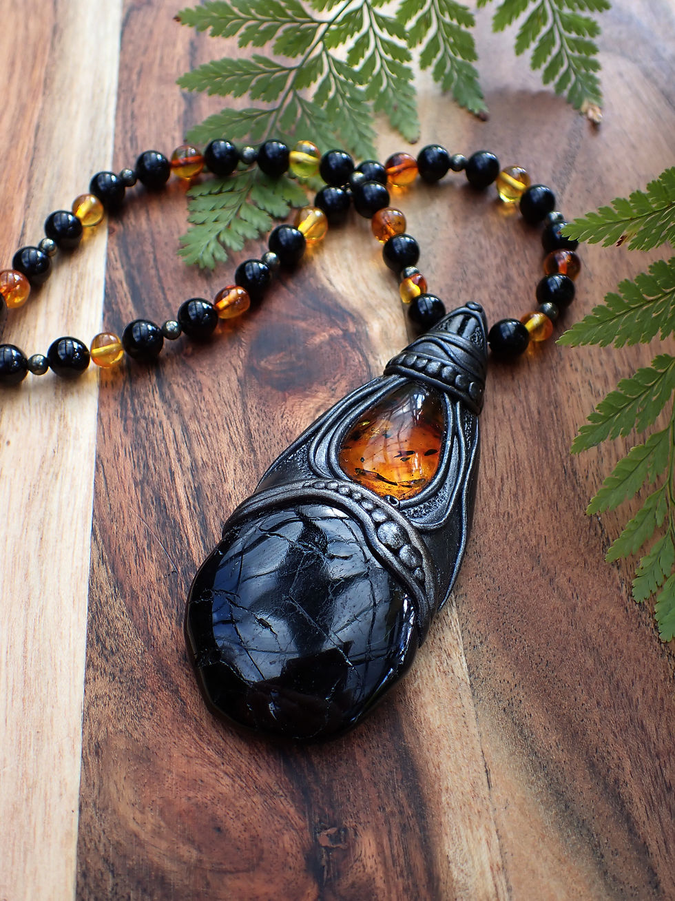 Shroud ~ Unisex Amber & Black Tourmaline Beaded Necklace